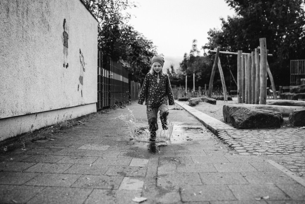 Dein Kind steht in der Pfütze. Ganz bei sich.